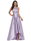Long satin prom dress with high low design, the dress makes you look charm, this evening dress is elagnt and fashion