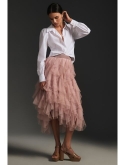 Polyester; rayon lining Ruffled detail Midi silhouette Pull-on styling Machine wash Imported Adorned with tiers of decadently ruffled tulle, this sweeping skirt is sure to make heads turn.