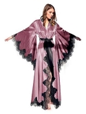 Features:Luxurious silk satin floor length long kimono robe,silky feel, shinny and smooth to the touch,ligthweight and comfortable,elegant lace edge with satin ribbon,long sleeves,tie closure
