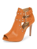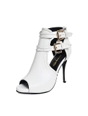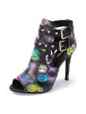 SHOES FEATURES: Solid-color/faux suede/leather/printing style, peep toe, thin high heels and buckled ankle strap.