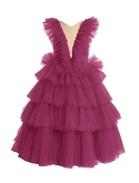 Features:Fancy little kid tulle layers ball gown fluffy skirt,illusion v neckline,sleeveless,ruffles straps,empire wastline,adjustable lace up back,lightweight and comfortable touch