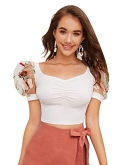 Polka dot, contrast mesh, short sleeve, square neck, crop top