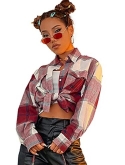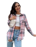 Floerns Women's Casual Plaid Long Sleeve Button Front Collar Blouses Shirts Top
