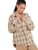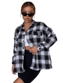 Feature: plaid, long sleeve, button front, collar neckline, drop shoulder, casual blouse top shirt