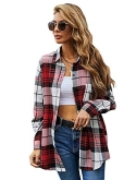 Women's Casual Plaid Long Sleeve Button Front Collar Blouses Shirts Top