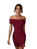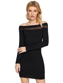 A mini dress featuring an off shoulder neckline with mesh insert, short sleeves, and a bodycon silhouette