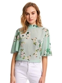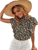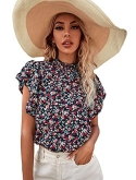 Lantern Short Sleeve, floral print, button front blouse
