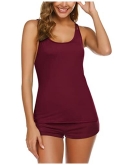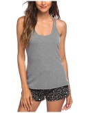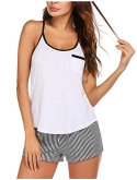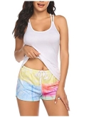 Cami Pajama Set for Women: Sleeveless pj top features racerback tank top, two stripes design and solid color. Crew neckline and high stretchy fabric is perfect versitale for all age.