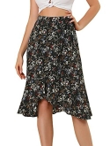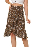 Non-see-through Floral Print, Unlined, Non-stretch, Wrap Tie Up Skirt, Knee Length, perfect for formal or casual wear