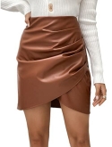Feature: Bodycon Skirt, High Waist, Tulip Hem, Overlap, Wrap, Ruched, Solid, Glamorous
