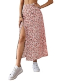 Feature: Ditsy Floral Print, High Side Split, High Waist, A Line, Casual, Maxi Dress