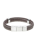 Take your look to the next level whenever you wear this LYNX braided leather and stainless steel bracelet.