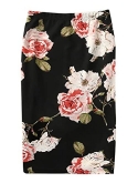 Feature: Plus Size Midi Skirt, Floral Print, Elastic Waist, Bodycon Skirt, Elegant