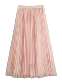 Feature: Mesh, Pleated Hem, High Waist, Elastic Waist, A Line, Long Skirts