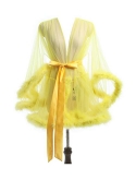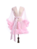 Material: Robe is: High Quality Tulle and Feather, belt is satin. Please allow some feather fall off, because it is natural feather.