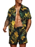 SUMMER CASUAL FLORAL SET--- Men's Hawaiian Shirt loose fit, button-down short sleeve, spread collar; Beach Shorts with slanted side pockets and rear pockets, elastic waist drawstring. Simple and classic matching of shirts and shorts suits, save you the time of choosing to match.