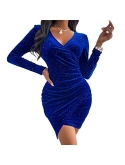 Unique Design: This velvet wrap dress bodycon dresses, vestidos, vestido para ano nuevo de mujer, velvet ruched dress,long sleeve cocktail party dress, glitter bodycon dress, velvet bodycon dress, velvet dress bodycon, velour dress for women, dresses velvet is slim fit, easy for wrap your chest, asymmetric hem, make you look feminine.