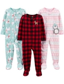 Three sets of gripper-foot pajamas featuring fun patterns and appliques
