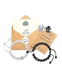 ENERGY BEADS BRACELET The black beads are matte agate stone, shows his masculine and energy, could help to release stress and the white beads are white howlite, shows her pureness and beauty, help her to be healthy and lucky.