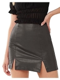 Three style leather skirts for your choice. Mini faux leather skirt for women featuring high waist, back zipper closure, solid color, slim style, above knee length, and can give you a charming looking and sexy figure. Every girl need a skirt like this in their closet, the little black dress of skirts!