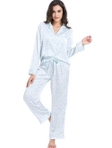 Made from a luxurious silk-like satin fabric, this pajama set is soft and lightweight for year-round wear.