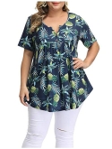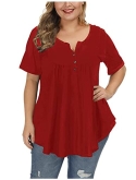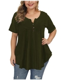 Henley V neck can let your neck line looks more slender and graceful.Button-up on neckline detailing lends casual yet elagant feel to the top.Short sleeve tops / short sleeve t shirts can keep you feel cool and comfortable on hot summer day while staying active either at work or at play.