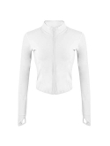 Zip up closure Long sleeve with nail holes Slim fit, more convenient to move Crop length, tapered waistline Perfect for casual, running, sports, yoga, workout...
