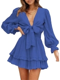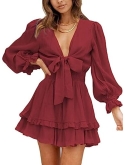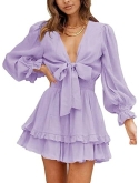Floral Print Layer Ruffle Knotted V-Neck Long Sleeve DRESS With skin-friendly fabrics, lightweight, no sticky hairs and quick drying, this eprire waist dress gives you a floating feeling.