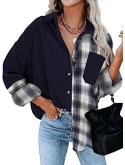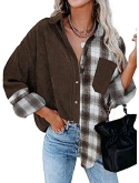Contrasting plaid pattern design make this corduroy shirt fashion and flattering