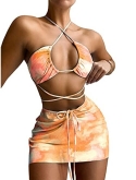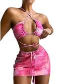 Bottom: High cut brazilian bikini bottom and drawstring ruched beach skirt