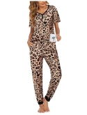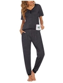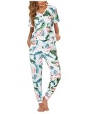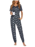 Two Piece Pajamas Set: Ekouaer sleep set with short sleeve tops and long pants. The sleepwear pj features with crewneck & button tops, full-length pants with comfortable elastic waistband.