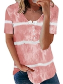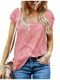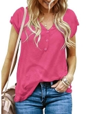 Features: V Neck with Buttons Detail, Short Sleeve, Solid Color, Pull On Basic T-Shirts for Women