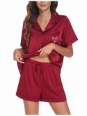DESIGN: Chest pocket. The pocket with love pattern can add more beauty and vogue for the womens satin pjs. The exquisite fabrication of a blissfully soft fabric, along with superior stitching and perfectly-lined hems, upgrades this essential silky pajama set to an indulgence