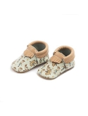 [USA MADE] Highest quality leather and suede are used to make these soft sole bow moccasins for the just right first newborn shoe. Professional tailors create each pair by hand with careful attention to detail.