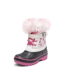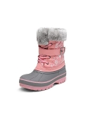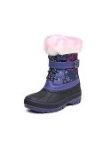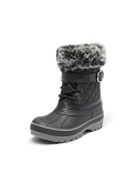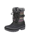 Mid-calf boot faux-fur trim with adjustable buckle closure.