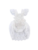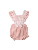 Unique Design: Floral Lace Applique, Ruffle Sleeve and Bottom, Adjustable Straps, Backless Romper for 0-18 months toddler infant newborn baby girl.