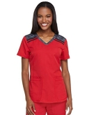 FLATTERING FIT, SIZES UP TO 5XL - V-neck top features figure flattering front and back seams for fit and shaping. Contrast neckband and yokes. Sizes from XXS to 5XL. Our scrub tops for women are designed for comfort and maximum durability. (Scrub pant sold separately.)
