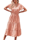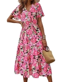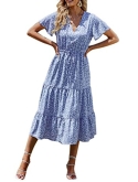 UNIQUE FEATURES: Ditsy Floral Maxi Dress/Short Sleeve Boho Dresses/Ruffled Hem Flowy Dress/High Elastic Waist A-Line Dress/V Neck Swing Dresses/Leopard Print Bohemian Dress/Maxi Dresses With Belt/Decorative Buttons Boho Dress/Summer Dresses For Women/Tiered Maxi Dress For Women/Fit And Flare Dress For Women