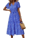 COMFY & LIGHT MATERIAL: This Summer Maxi Dress Use Breathable And Lightweight Polyester, Snug To Wear For Summer. The Short Sleeve Bohemian Dress Has Lining, Not Need To Worry About See Through, Giving You Cozy And Friendly-Skin Wearing Experience.