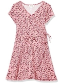 Short sleeve fit and flare dress Faux tie at waist Flowy skirt Above the knee length on most Perfect dress for tween, 7-16 girls