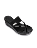 Take warm-weather looks to stylish heights in the glossy platform wedge heel and effortless design of Kenneth Cole Reaction's Pepea sandals. Kenneth Cole Reaction's Pepea wedges update a classic thong profile adding a wide strap and chunky platform heel to the mixed-media design.