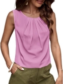 Women's Casual Pleated Round Neck Sleeveless Work Office Blouse Top