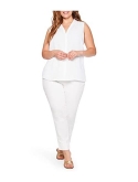Woven top Sleeveless, bra friendly Back ruching for a flattering fit Faux front placket 27" Long special size type: standard