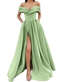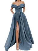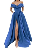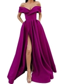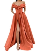 Long satin formal dresses with slit for women,off shoulder A-line formal prom dresses with pockets, full length evening party gowns with slit,elegant split formal evening gowns with pockets for women,v neck long prom dresses with slit,beautiful skirt with pockets, A Line long split satin prom dress for women,perfect choice for every important moment in life.Enjoy the wonderful time!