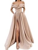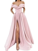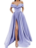 Dress Design: Unique off shoulder and V-neckline, high waist and side slit designs can better show your body curve,absolutely stunning!With side pockets,built in bra,lace up back,full length A-line satin prom dress is a pleasing pick, you will receive many compliments on this beautiful and flattering dress!