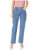 Relaxed straight-leg jean with mid-rise waistband and five-pocket styling Zip fly with button closure