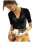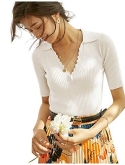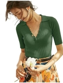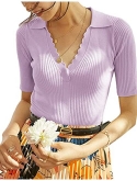 Features: Polo Sweater Style, V Neck, Fitted Short Sleeves, Slim Fit, Ribbed Pullover Sweater. Classy, Comfy, Warm and Soft Knit Sweaters For Woman.This sweater is very stretchy, it is recommended to buy 1-2 size smaller