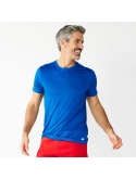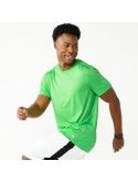 Dry Tek, moisture-wicking technology Tag free Crewneck Short sleeves 95% recycled polyester, 5% spandex Machine wash Imported