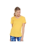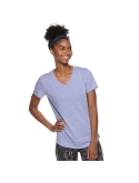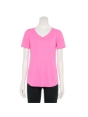 Moisture-wicking technology Jersey construction Tag free Shirttail hem V-neck Short sleeves Cotton, polyester Machine wash Imported
