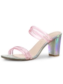 Clear Strap, Open Toe, Slip On, Block High Heel, Slide Mule Sandals